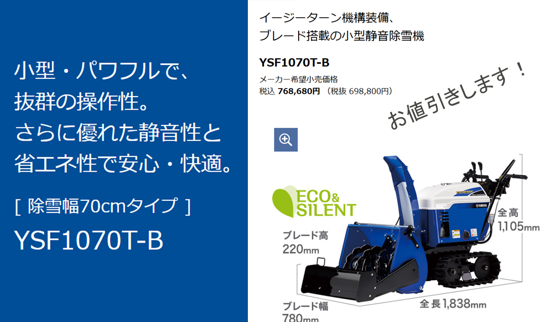 除雪する場所や広さによって適切な機種を選ばなければなりません、まずはお気軽に当店にお電話いただきご相談ください。